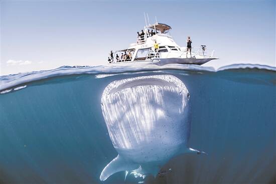 一只巨大的鲸鲨潜伏在澳大利亚的一艘小船下 图/视觉中国 |