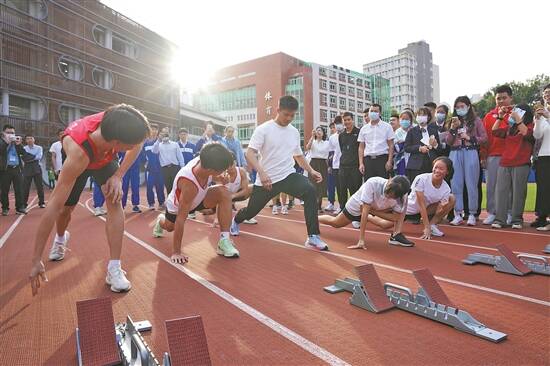 羊城晚报记者 蒋隽 实习生 张慧敏 通讯员 李芸 “亲爱的‘神学院’同学们,我是苏炳添。听说你们刚完成了期中考试,希望我说的能给你们启发。”11月15日,华南师范大学附属中学“华附讲坛”迎来“亚洲飞人”苏炳添。 “任何人,都不要给自己设置一个上限” “苏神”来了,“学神”也不淡定了!华附学子守在苏炳添的必经之道,欢呼尖叫。讲座举行的西阶梯教室早已人山人海。当苏炳添现身,同学们又激动得尖叫起来。 “看到这么多热爱体育的学生我很开心,相信华附的体育教学和学科教育一样好。”苏炳添说,他的演讲主题是“黄种人的极限?没有极限!” “大家都知道黑人运动员的基因、身体机能,跟黄种人是有很大区别的,他们拥有很强大的爆发力,跟我们的肌肉类型不一样,所以大家熟悉的百米飞人,几乎都是黑人,比如直到现在还保持着男子百米世界纪录的博尔特。”苏炳添说。 苏炳添接着说:“十年前,你要说黄种人也能跑进9秒9,可能会有很多专家搬出基因理论、人体解剖学的理论来跟你分析它的难度,但是现在,要说黄种人可能有一天也有机会打破博尔特的纪录,没有人会这么快出来反驳你。所以就如我在标题里所说的意思,黄种人,任何人,都不要给自己设置一个上限,特别是各位年轻的学生们,一定要有敢梦、敢想、敢去拼搏的心态”。 “突破自己,除尽力外可尝试改变方法” 突破极限是不是那么容易? 苏炳添总结了一份“心灵鸡汤”:“突破的‘极限’越多,对自己就越自信。要突破自我,首先要有很强大的意志力,要相信自己,要敢于去走出舒适圈,做出改变”。 他以自己改起跑技术为例,“我要用电脑技术一个个去研究自己脚步的落点,摆臂的动作幅度。我去比赛的时候会带上一卷小皮尺,因为起跑前我需要很精确地去量起跑器摆放的位置,量角度、量两只脚之间的距离。改技术之前我完成100米要花47步,改技术之后我要跑到48步,多出来这一步,我需要提高抬腿的速率,去突破多一个动作花费的时间”。 其次,突破自己,除了雄心,还需要有耐心。无论在学习上、生活上还是事业上遇到瓶颈,苏炳添建议大家首先想想,自己原来的方法是不是合理,自己有没有尽力去做好,如果你觉得没有问题,自己已经尽了万分的努力了,那么可以尝试去改变一下方法。 第三,团队作战。“中国男子百米接力队伍很团结,而且每个人的水平都跟着队伍的水平提高而不断获得进步。我很期待能看到更多年轻的运动员跟我一起站在赛场上,我希望他们当中很快能有人超越我,唯有这样,中国田径才能生生不息地发展下去”。 苏炳添建议同学们:“虽然学习成绩是你一个人的,但是你需要有队友,能够在身边给你促进,这是一种友好的竞争关系,可以激励你不断往前走”。 发言最后,苏炳添幽默地说,“各位同学,听说你们刚刚结束期中考试,可能这一次考试有人对自己的成绩很满意,有人会感到失望,希望我前面说的这些,能给你们带来一点启发。能在华附学习,证明你们都是同龄人当中成绩最拔尖的佼佼者,在学习之余,希望你们也能更关注中国体育的方方面面,因为体育能给予你发自内心的力量。我和中国田径人,在不断突破极限,也很希望能看到你们突破自己的极限,成为更优秀的自己”。 现场花絮 “苏神”田径场上教学生跑步 讲座结束后,苏炳添来到田径场,华附田径队队员早已等待多时,展示动作,接受苏教授的现场指导。有幸得到“亚洲飞人”的言传身教,队员们表示非常难忘。 “听到苏神要来,我们都特别激动!”来自高一(9)班的熊锋同学是一名田径特长生,已经考取一级运动员。在田径场上,苏炳添指导他调整起跑的角度,教他怎么调起跑器。“我今天是来向‘苏神’学习的,面对面的近距离让我清晰看到了他如何调节起跑器,帮助我在之后的跑步中动作更加规范。”不久前,熊锋同学在2021年广东省中学生田径锦标赛中跑出了10秒88的成绩,熊锋说,苏炳添坚持不懈的精神一直激励着他,并把“苏神”当做未来努力超越的目标。 (蒋隽 张慧敏 李芸)