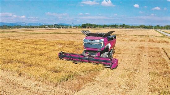 碧桂园研发生产的H9700型无人谷物联合收获机正在收割作业 |