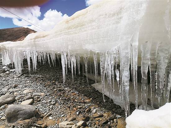 □文/图 颜士州 驱车来到珠穆朗玛峰大本营的时候,已是夕阳西下了。一缕缕炊烟升腾在绛紫与瓦蓝交浑的天地间,空旷的山谷里,显得特别幽静。吃罢晚饭,想到明天就可以看到令人神往的冰塔林了,压抑不住的激情使人难以入眠。钻进睡袋,我数着星星,企盼着天明。 冰塔林是分布在山脊和峭壁之间的大陆型冰川,是珠穆朗玛峰冰川中特有的造型。不过有科学考察显示,全球变暖,已导致珠峰冰塔林退缩到海拔5800米高度。 当天际还是灰蒙蒙的时候,我就赶忙起“床”了。站在帐篷外,望着东方,从山隙间看着那一线天光,慢慢地将墨也似的天地裁分为二,天终于亮了。经过几个小时的行程,我终于站在了5800米左右的冰川上,举目所及,一片洁白。 无数神奇的天公造物,令人目不暇接。那些巨大的冰川在消融过程中,有一些尚未融解,形成上细下粗、呈尖锥状的冰体,高低不等,数目之多,似无穷尽,便形成了这一大片冰塔林。座座冰塔拔地而起,千姿百态,细如羊脂,晶莹剔透。它们风情万种,形态各异,绵延数公里,蔚为奇观。由于海拔高、景色奇,所以,这里被登山探险者们誉为“高山上的公园”,风采冠绝天下。 漫步“园”中,似进入梦幻般的仙境,让人不由尽情地揣摩、联想,激发起脑海中的每束灵光。这些冰塔有的像古印度城堡,犹闻鼓乐悠扬,气势雄伟;有的像“西行求法”的中国僧人;有的高达数十米,似欲钻天;有的却高不盈尺,如嫩芽破土。 离我20米远的地方,一块巨石被冰柱托起,像一把巨伞给冰川留下了一片浓荫,这就是登山者们常说的“冰蘑菇”。冰柱拱起的巨石,原本在冰川上,由于巨石的遮盖,阻住了阳光的照射,没有融化的部分形成了一根孤立的冰柱,筑成眼前奇观。回头望,又是好一块硕大的冰面,像墙一样矗立。冰墙不知生自何年,听说它年年在,却年年不同。墙面上沟沟坎坎,凹凸不平,记录着千百年来的风雨沧桑,像一块巨大的碑碣。在另一处冰山的裂缝中,由于常年风沙,集成了一条墨线自天而下,远远望去如墨瀑飞流。 我此时正站在冰塔林的一处风口,天风沐体,吹得衣衫欲飞。运动着的万物都让人感受到强烈的生机。整个冰“园”在阳光照射下,交织成金灿灿一片琉璃世界。每束跳动着的光都在呼唤着人们热爱山野,回归自然。我不由地想:一个人的胸襟气魄,原来还是有待于大自然的洗练淬砺,一分根骨,一分造化,都是勉强不来的。所谓“仁者乐山,智者乐水”,正是此理吧。