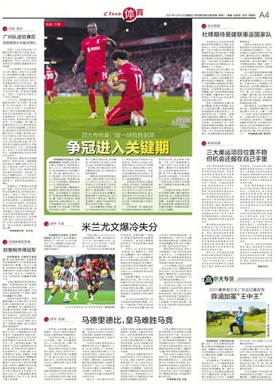 2021年12月12日/星期日/ 体育新闻部主编/责编 钟闻一 / 美编 伍岩龙 / 校对 潘丽玲
