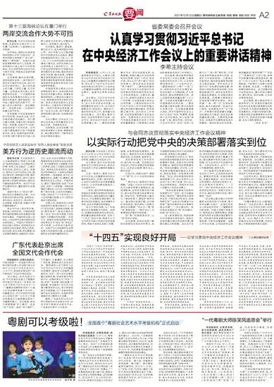 羊城晚报讯 12月11日,省委常委会召开会议,认真学习贯彻习近平总书记在中央经济工作会议上的重要讲话精神和会议精神,传达学习习近平总书记在中央政治局会议和党外人士座谈会上的重要讲话精神,研究我省落