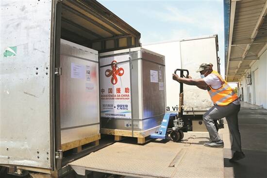 中国援助莫桑比克的新一批中国国药新冠疫苗日前运抵莫首都马普托,莫卫生部13日举行交接仪式。