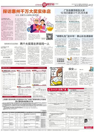 文/羊城晚报记者 吴珊 通讯员 粤体彩 插图 采采 12月7日晚上,惠州市河南岸螺仔湖2号小区15栋商铺4411030439体彩实体店中出第21141期7星彩一等奖2注,奖金共