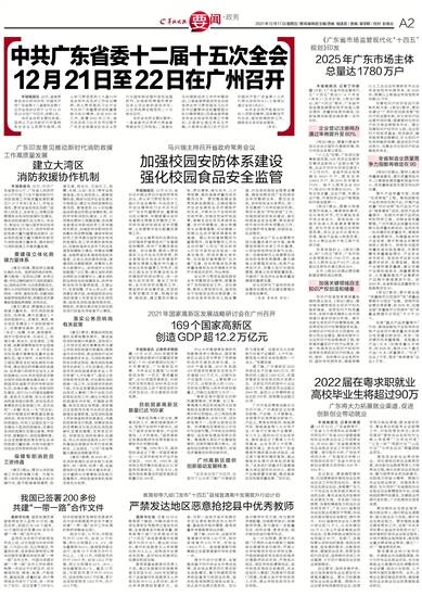 中共广东省委十二届十五次全会 12月21日至22日在广州召开