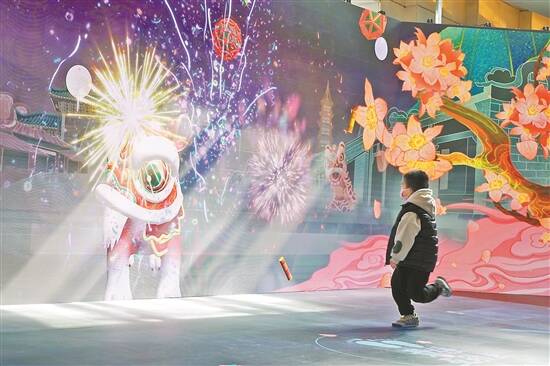 小观众体验非遗数字沉浸式空间互动游戏 羊城晚报记者 曾育文 摄 |