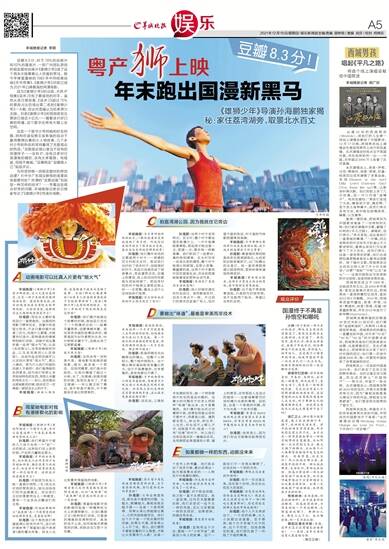 羊城晚报记者 李丽 豆瓣8.3分,好于78%的动画片和92%的喜剧片,一部广州团队原创的现实题材动画片《雄狮少年》成了这个周末大银幕最让人惊喜的黑马。除今年修复重映的1983年中国