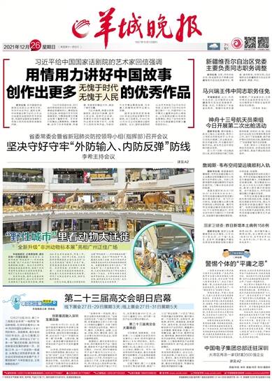 1957年10月1日创刊 2021年12月26日 星期日 辛丑年十一月廿三 责编/孙焰 林圳 美编/肖莎 校对/潘丽玲 报料热线:(020)114转羊城晚报报料、(