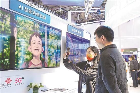 观众在中国联通展位体验AI面部表情 羊城晚报记者 王磊 摄 |