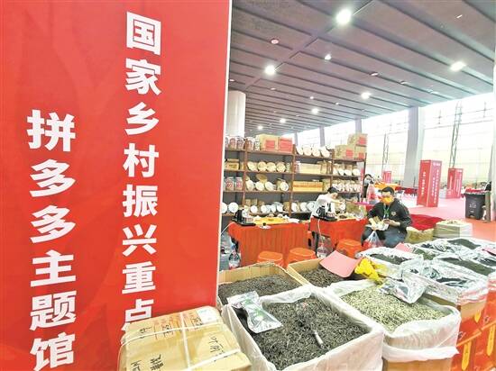 拼多多展台上陈列的帮扶县农产品 |