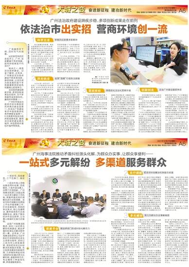 羊城晚报记者 张璐瑶 董柳 广南富庶天下闻,四时风气长如春。 站在新百年的历史起点上,广州,这座繁盛千年的商都,如何持续焕发不朽活力? 秘诀之一,就是法治政府建设。记