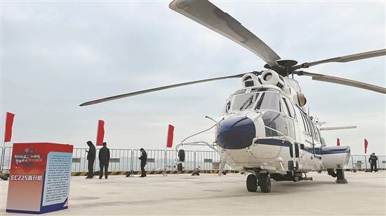 活动现场展示的EC225直升机 郭思琦 摄 |