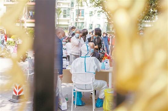 2022年1月7日,深圳龙岗区布吉街道医务人员正在小区对居民进行核酸检测 视觉中国供图 |