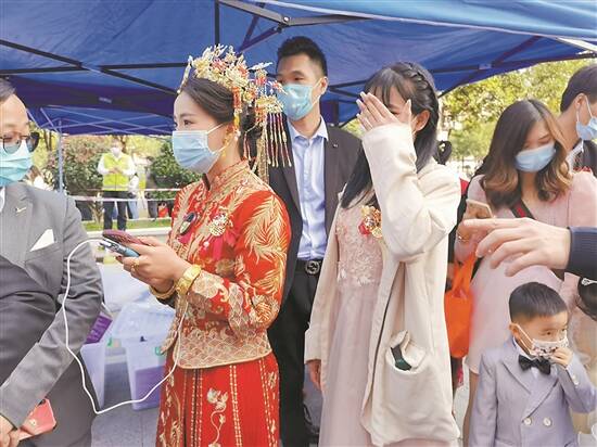“跨市迎亲”的新娘子做核酸检测 图/龙岗融媒 |