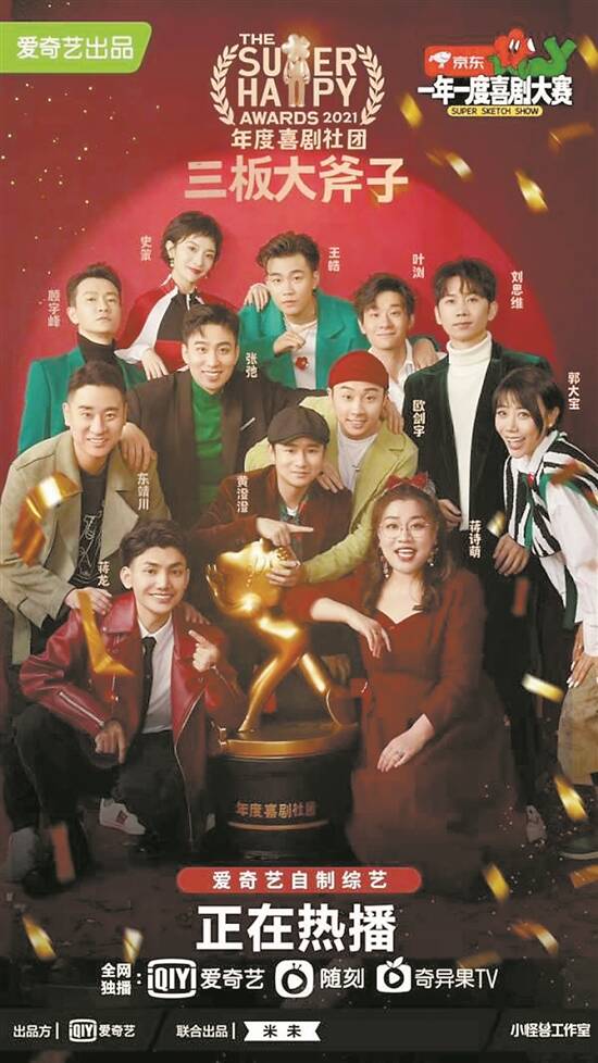 羊城晚报记者 邵梓恒 1月7日晚,爱奇艺自制综艺《一年一度喜剧大赛》迎来总决赛。黄渤、徐峥、于和伟三位导师亲自上台助演,沈腾和贾玲也赶来助阵总决赛。 在最后的颁奖典礼上,由100家媒体代表、9位专业担当以及7位组委会成员组成的评委会,选出了年度喜剧社团、年度喜剧编剧、最受行业瞩目作品、最受观众喜爱作品、年度喜剧搭档等多个奖项。随着一系列获奖名单的新鲜出炉,这群喜剧人的实力得到了进一步的认可。 最终,于和伟带领的喜剧社团“三板大斧子”凭借作品《热搜预定》,成为第一季年度喜剧社团。这个由十二位各具特色的喜剧演员组成的社团,这一季节目开播以来,给大家奉上了《互联网体检》《台下十年功》《披星戴月的想你》《反诈银行》等多个精彩节目。 此外,六兽获得年度喜剧编剧,《偶像服务生》获得“最受观众喜爱作品”,《笑吧,皮奥莱维奇!》获得最受行业瞩目奖,蒋龙、张弛的“逐梦亚军”组合获得年度喜剧搭档冠军,终于不再“逐梦亚军”。刘大锁和孙天宇的“大宇治水”组合以及史策、王皓组成的“皓史成双”组合则分获年度喜剧搭档亚军和季军。 结果公布后,很多网友都表示,所有奖项都是实至名归。还有网友发文表示不舍,称这3个月因为这档节目自己更快乐了。“这是今年最成功的综艺。”“CP排名似乎读取了我的大数据。”