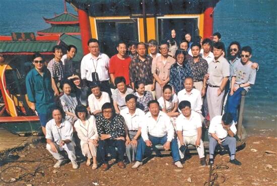 第二排左三为郑敏,右一为谢冕。第三排右起:郑单衣,唐晓渡,杨克,路也,梁小斌,于坚,徐敬亚 (杨克提供) |