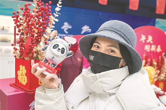 市民展示在年货节上购买的冬奥纪念品 新华社发 |