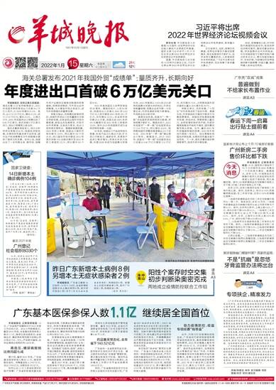 1957年10月1日创刊 2022年1月15日 星期六 辛丑年十二月十三 责编/陆德洁 林圳 实习编辑 何欣 美编/肖莎 校对/谢志忠 报料热线:(020)11
