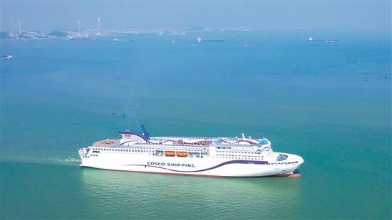 羊城晚报讯 记者沈钊,实习生郑祖钦,通讯员彭永桂、符致冠报道:“VIP海景房,露天烧烤餐厅,10人座位KTV 包间兼小酒吧……”1月18日,中国船舶集团旗下广船国际有限公司为中远海运客运有限公司建造的目前国内最先进的1370客/2800米车道豪华客滚船2号船“祥龙岛”号在广州南沙命名交付。 记者随船参观时了解到,“祥龙岛”轮总长208米,船宽28.6米,最大航速23节,是目前国内客滚船中航速最快、智能化最高的现代化节能环保型大型客滚船。该船车道长2800米,可以运载超过500辆车辆。船上配备了最为齐全的滚装设备,包括艏门、艏跳板等15种滚装设备,大大提高了车辆等滚装设备的装卸效率。 该船额定载客1375人,船上建设有能承纳340人的半开敞式露天烧烤餐厅、10人座位 KTV 包间兼小酒吧、棋牌室、电影院、120平方米超市、健身房等个性化设施。同时,比照国际豪华邮轮设计理念,露天甲板布置了天幕区、休闲座椅、时尚橡塑地板、 LED 大屏幕等设施设备,能够为旅客提供晚宴、会议,派对等各种创意个性化服务,可以满足旅客出行和休闲的双重需求。