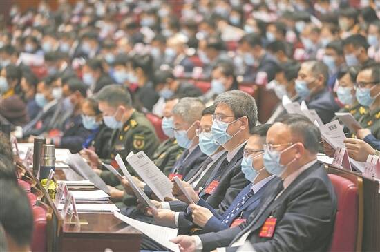 省十三届人大五次会议第二次全体会议现场 羊城晚报记者 宋金峪 摄 |