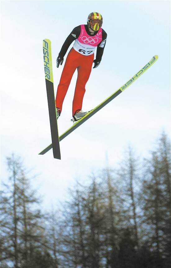 跳台滑雪是以滑雪板为工具,在专设的跳台上以自身的体重通过助滑坡获得的速度比试跳跃距离和动作姿势的一种雪上竞技项目。运动员脚穿特制的滑雪板,沿着跳台的倾斜助滑道下滑,借助速度和弹跳力使得身体沿抛物线在空中飞行,飞行约4—5秒钟后,落在着陆坡后,继续滑行至停止区停止。 2022年北京冬奥会跳台滑雪比赛将在张家口赛区国家跳台滑雪中心进行,届时将产生5枚金牌。设有男/女90米级标准台(原为70米级)、男子120米级大跳台(原为90米级)和男子团体赛(大跳台)3种项目。 跳台滑雪起源于古代挪威统治者处罚犯人的一种刑罚——把犯人两脚各束缚一块雪板,从雪上高处推下。不过让人感到好奇的是,为何运动员从高空落下来时却很少受伤? 一方面,因为跳台滑雪的场地是经过精确计算的,着陆时的轨道与运动员下落时的抛物线轨迹基本重合,从而可减少伤害。如果直接从空中掉下来,坚硬的地面会立刻使速度降为零,这种剧烈减速的力量在身体上分布不均匀,会对人体造成极大的伤害。但是降落在坡道上,虽然不太平缓,但对滑雪者来说,速度的变化要慢得多。 另一方面是运动员必须要有超强的技术保证。跳台滑雪的技术动作包括助滑、起跳、空中飞行和着陆四部分,每一个动作都至关重要。其中,空中飞行对运动员的平衡力、控制力等提出较高要求。在飞行过程中,运动员可以通过“V”形姿势减少风阻,提供更多的升力,靠手臂摆动来控制身体平衡。着陆时,运动员身体重量应分别落于两脚,两腿屈膝做缓冲,两臂左右平伸,以维持身体平衡。 装备的选择同样至关重要。雪橇板最宽不超过11.5厘米,长度约是选手身高的1.5倍。滑雪靴除了柔韧性要强外,还要保护脚踝。固定器使选手脚后跟有足够的自由,以便选手能够在飞行中前倾。连体服要求柔韧性强、轻便宽松,以减少空气阻力。 由于对场地要求以及对选手的技术要求很高,这项运动暂时还处于极限运动之列,难以向大众推广。 羊城晚报记者 詹淑真