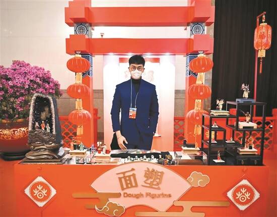 郎佳子彧为贵宾展示面塑艺术(受访者供图) |