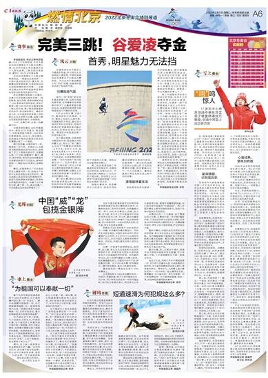 2022年2月8日/星期二/ 体育新闻部主编 责编 钟闻一 / 美编 蔡红 / 校对 潘丽玲 总 策 划:孙 璇 胡 泉 统 筹:陶 勇 侯恕望 黄建隽 协