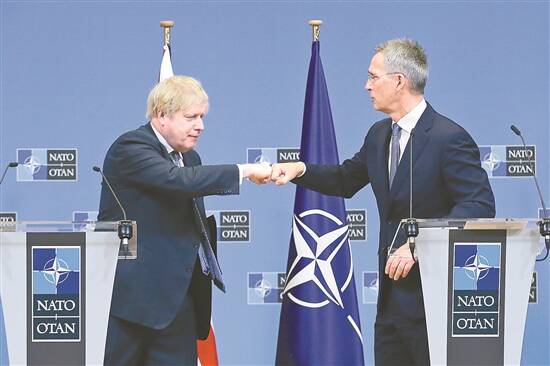 10日,英国首相(左)与北约秘书长在布鲁塞尔会面 新华社发 |