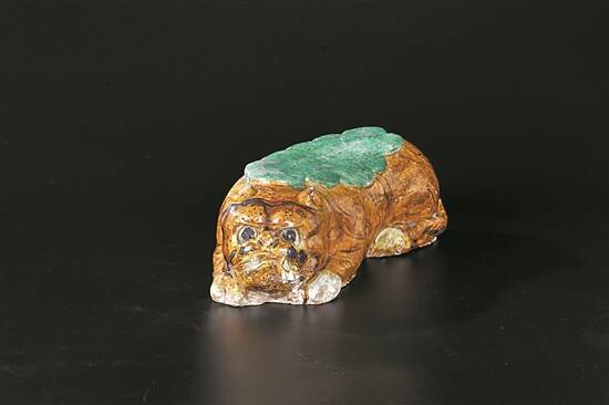 金 山西南部窑场三彩虎形刻诗文枕 |