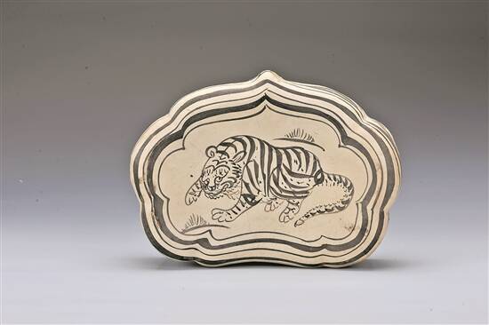 金 河北磁州窑“张家造”白地黑花虎纹如意形枕 |
