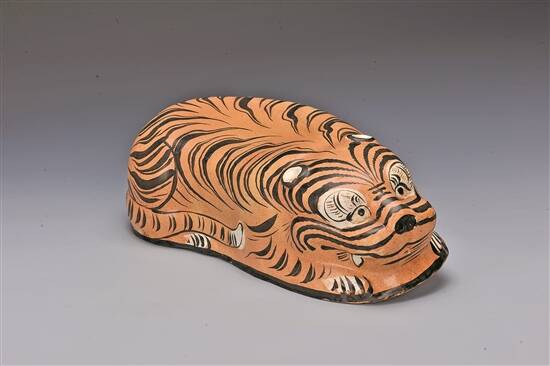 文/羊城晚报记者 黄宙辉 通讯员 李光辉 胡田甜 图/南越王博物院提供(除署名外) 2022年是农历壬寅年(虎年),各大文博机构纷纷推出和“虎”相关的主题展,其中包括南越王博物院(以下简称“南博”)推出的微展览——《虎年话虎枕》,该展览正在“南博”王墓展区开展,该展共展出“南博”枕类藏品19件(套),包括一级文物3件、二级文物3件、三级文物3件,还有近年新征集、首次展出的三彩虎形刻诗文枕、布枕等精美文物,展期至3月27日。 中国虎文化生生不息 《说文解字》曰:“虎,山兽之君也。”其勇猛雄健、自由独尊的品格和精神一直深受中国人的喜爱与崇拜。在中国历史文明长河中,虎文化渊源悠远,生生不息。虎形象和虎文化已深深渗透到中华民族的精神生活中。“南博”收藏有30余件与“虎”题材相关的枕类藏品。借虎年新春,院方从中选择精品,结集成展,希望更多人了解到中国的虎文化,欣赏枕上的虎艺术。 作为传统文化的承载,虎枕艺术延续至今,一些地区仍有向新生婴儿或婴儿过“百岁”赠送虎形枕头或耳枕的习俗。这些枕多由祖母或外祖母亲自缝制,寄托老人对幼子的关怀和疼爱。民间手工艺者也将虎英勇、正义、威严的品格及其生命力的象征融入枕的装饰及造型上,与传统赈灾辟邪的五毒纹饰——蟾蛙、壁虎、蜈蚣、蛇、蝎子等组合,作为装饰,以此来加强对孩子们的保护。 以虎为枕寓意避凶除恶 在大量的古文献中,虎的威严被用来象征官府的森严和执法的无私,故传统风俗常祭虎以为神,汉唐时期即画虎于门首,取虎之神威以镇妖邪。在民间,百姓不再仅仅将虎视为凶猛的野兽或者权威的象征,而是把虎视为有灵性的保护神,并寄托对生命和生殖的崇高希望。人们相信,以虎为枕可以避凶除恶,去邪压惊。早在南朝陶弘景《本草经集注》卷六虫兽三品“虎骨”条下就有“虎头作枕,辟厌恶”的记载。 陶瓷虎枕可分为虎形枕和虎纹枕。虎形枕是模仿老虎的形状制成的寝具,因其形象多为伏卧状,又称伏虎形枕或卧虎形枕。北宋胡宿撰《文恭集》中“昨夜西楼月,团圆似去年。凤屏非复旧,虎枕未呈眠。破恨凭湘酎,流哀寄蜀弦,葛华与参宿,此见恐无缘”,便记载了虎形枕给人们带来的惊喜感受。该院院藏瓷枕中的虎形枕以金代长治窑产品最多,均呈卧虎状,虎背平整内凹作枕面,枕面装饰题材丰富,以白地彩绘花鸟纹居多,也有诗文等装饰。 虎纹枕是在枕面上以猛虎图案作为其主要装饰的枕。瓷上绘画虎纹饰开创于宋而盛行于金代。目前,有确切出土地点的虎纹枕均见于河北省磁县,即磁州窑的中心区域,当为本地所生产。 重点展品 一、金 山西南部窑场三彩虎形刻诗文枕 瓷枕呈卧虎形,前低后高。虎的前爪合曲于颌下,虎尾左曲于腹侧。瓷枕釉色润泽,虎的两耳巧作透气孔。枕身在化妆土上罩黄彩,以一缕缕波动的黑线描绘虎皮之斑斓,其上再以黑彩描绘眼、眉、耳、嘴、獠牙和尾端等细部。虎背为绿荷叶形,上刻划诗文一首。 二、宋 河北磁州窑黑褐彩雁兔纹卧虎形枕 自唐以后,兽形枕迅速发展,其中尤以虎枕最为典型。宋代在唐代兽形枕的基础上进行创新,并赋予新的寓意。传统圆雕技法也在此时被引入瓷枕的制作,渐臻熟妙境地,为工匠塑造动物形体提供了技术支持。 三、金 山西长治窑褐地黑白彩虎形枕 金代彩绘虎形枕数量很多,造型基本相同,均以卧虎为枕座,只在虎头、尾、爪部位塑出大致凹凸轮廓,再用墨彩画出条纹状虎斑与虎口、眼、鼻、耳等。整个虎身不成比例,头部巨大且与身体融为一体,四肢也明显缩短。通气孔多位于虎鼻孔处,隐而不露,颇显制作者巧思。这与金人居于关外,常与老虎搏斗,虎在他们的生活中具有重要的意义有关。南下之后,真虎难得,虎形枕在一定程度上满足了金人的精神需要。 四、宋 河北磁州窑“张家造”开光坐虎纹腰圆形枕 金 河北磁州窑“张家造”白地黑花虎纹如意形枕 瓷枕上的虎纹,以单只虎较为常见,且多有草木、树石为衬。宋代,老虎造型多作蹲伏状和悠闲状,造型准确传神,极具中国水墨味道和文人气质。金代磁州窑绘画老虎多作趴伏状和行走状,其造型稚拙随意,画风粗犷质朴。