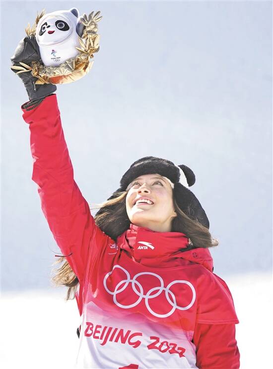 冰墩墩和谷爱凌,两个“顶流”的相遇,人气爆棚的冰墩墩设计出自广美团队 图/新华社 |