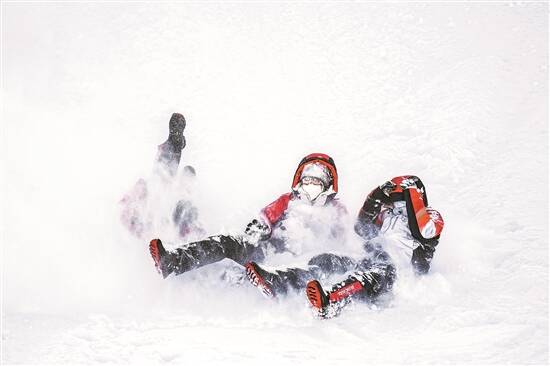 张家口赛区工作人员在比赛结束后“放飞”自我 新华社 发 |
