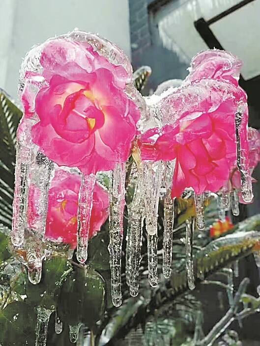 冰层覆盖下,花朵分外鲜艳 廖云丽 摄 |