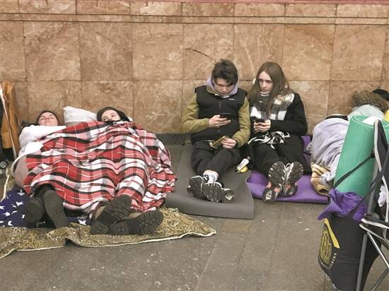 当地时间2月25日,乌克兰基辅民众在地铁站内避险 新华社发 |