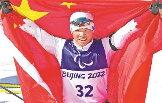昨日北京冬残奥会共产生6枚金牌,中国代表团单日拿下1金1铜,连续4日获得金牌。截至发稿时,中国代表团取得了8金8银11铜的好成绩,暂居奖牌榜首位。 昨天中国代表团拿到的唯一一枚金牌,来自冬季两项男子中距离坐姿比赛。中国选手刘梦涛以30分37秒7的成绩夺金,这也是中国代表团在北京冬残奥会上获得的第八枚金牌。 3月5日,刘梦涛在北京冬残奥会冬季两项男子短距离(坐姿)比赛中获得铜牌。时隔3天,刘梦涛在中距离比赛中成功将奖牌“变”成金色,在家门口圆梦。刘梦涛表示:“对今天的表现很满意,尽自己全力了,非常满意!第一天我就达到了自己的目标,今天算是超额完成了!” 此外,为中国代表团拿下了首金的刘子旭在冬季两项男子短距离(坐姿)比赛中获得第5名,王涛第7名,朱运锋第10名。当刘梦涛、刘子旭、王涛和朱运峰全部完赛后,四名队员齐声高喊“中国队必胜”,同时高举五星红旗向观众致意。“这是在家门口比赛,我们就是想尽自己一份力为国争光。”刘梦涛说。 8枚金牌是中国队在单届冬残奥会中的历史最佳战绩。上一届平昌冬残奥会,中国队只获得1枚金牌。 昨日上午,北京冬残奥会在冬季两项中心还进行了女子中距离(坐姿)比赛,单怡霖、翟雨鑫、 王诗瑀、褚贝贝分获第四名到第七名。单怡霖赛后接受采访说:“今天太遗憾了。这两天感冒了,状态很不好,和前几天的比赛相比状态差很多。” 昨日下午,在北京冬残奥会冬季两项女子10公里(视力障碍组)比赛中,中国选手王跃(领滑员:李亚林)获得铜牌。比赛中,一度领先的王跃在射击中出现失误,导致名次下降,李亚林则不断帮助王跃调整好心态。最后一轮射击,王跃五发全中锁定奖牌。“这个调整很及时。”王跃说,她始终相信自己的领滑员。李亚林说,在王跃身上,他看到了一种坚持的力量:“她是我的女神!” 羊城晚报记者 詹淑真 实习生 梁令菲
