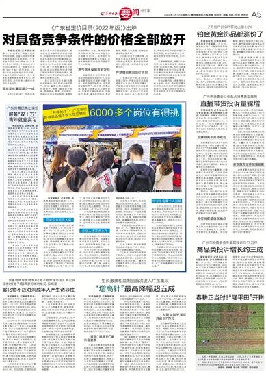 羊城晚报讯 记者唐珩报道:11日,记者从广东省人民政府网站获悉,经省人民政府同意和国家发展改革委审定,《广东省定价目录(2022年版)》(下简称《目录》)印发,并自2022年3月15日起施行。《广