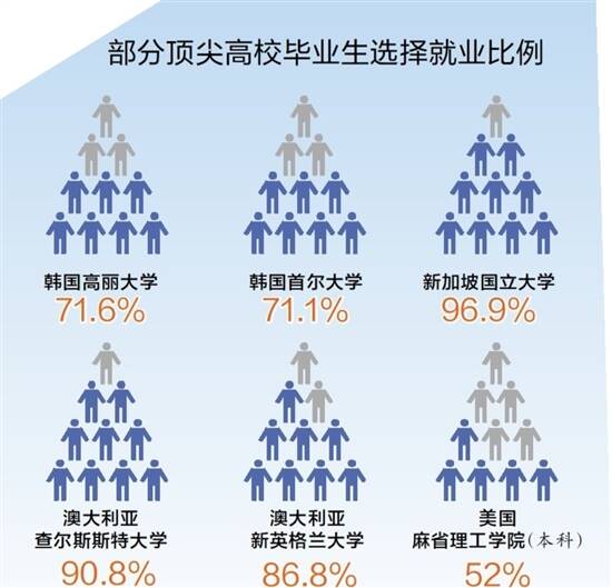 文/羊城晚报记者 孙唯 实习生 邱家达 洪羽忻 黄思韵 过去一年,全球疫情形势依旧严峻,经济呈现下行趋势,顶尖高校毕业生的就业问题引人关注。近期,全球多所顶尖高校发布了2021届毕业生就业情况。那么,世界各国的“天之骄子”们,他们毕业后,究竟做出了何种选择? 顶尖高校毕业生不愁好“出路” 不论升学还是就业,其实全球顶尖高校的毕业生凭借较高的专业素质并不愁“出路”。各高校有关数据显示,顶尖高校的毕业去向落实率(即升学率与就业率的总和)几乎都超过普通高校,比如清华大学的毕业去向落实率就有98%左右。 由于国内就业市场学历权重较高,中国顶尖高校本科毕业生选择升学深造的比例仍较高。比如,在本科升学方面,根据2021届清华大学和北京大学的毕业生就业质量报告,两所高校本科升学的比例均超过70%。 其他国家顶尖大学本科毕业生选择就业仍占较高比例。比如韩国的高丽大学、首尔大学和延世大学分别达到71.6%、71.1%和70%。新加坡国立大学在2021年继续实现高就业率,达到96.9%,比新加坡高校就业率总体水平高出12.9%。2021年澳大利亚顶尖高校查尔斯斯特大学、中昆士兰大学、新英格兰大学、南昆士兰大学和詹姆斯库克大学就业率均在80%上下浮动,明显超过澳大利亚国内高校本科毕业生平均68.9%的就业率。麻省理工学院2021年就业率虽有所下降,当仍有高达52%的比例。 毕业生起薪普遍高出当地平均水平 凭借着顶尖高校深厚的教学实力和在当地的社会影响力以及学生自身相对深厚的专业知识积累和出色的才干,在期望收入和毕业起薪方面,全球顶尖高校毕业生的薪资标准和获得一般会比较高,普遍高出当地平均水平。 例如新加坡国立大学在获得高就业率的同时,其应届全职毕业生的平均月薪总额增长了4.3%,从2020年的4082新元升至2021年的4258新元,中位数也从2020年的3800新元增加到2021年的3850新元。而根据新加坡人力部(MOM)的最新数据,2021年,新加坡工资中位数达到4680新元,表明新加坡国立大学应届毕业生起薪便已接近新加坡中等水平。 根据剑桥大学2021年MBA学院的就业报告,该学院2019-2020年毕业生平均基本工资达到6.7万英镑。而根据英国国家统计局(ONS)统计,英国全职工作者的年薪中位数为3.1万英镑,可见英国顶尖高校毕业生的强劲实力。 在德国,毕业生工资高的几所大学有慕尼黑工业大学、科隆大学、法兰克福歌德大学、法兰克福金融与管理学院等,年薪均超过8.1万欧元,而德国平均税前薪资约为5.7万欧元。 据Social Security Administration(美国社会安全局)统计,2021年美国平均年薪为53383美元,中位数是34612美元。哈佛大学校报63%进入职场的毕业生预计在毕业后第一年收入就可超过7万美元,而计划在科技行业工作的毕业生的期望收入更高,预计超过11万美元。麻省理工学院2021届本科生进入行业年平均薪酬最低的是学术研究所,为59257美元,最高的是金融保险业,为155776美元;研究生进入行业年平均薪酬最低的是政府工作,为89146美元,最高的也是金融保险业,为167781美元。 由于不同行业的性质和发展状况可能导致不同专业毕业生间有所差异,导致顶尖高校不同专业毕业生的期望收入和毕业起薪有一定分歧,最高与最低水平有比较明显的差距,但整体上依旧高于当地平均水平。 朝阳产业最吸引顶尖高校毕业生 虽然顶尖高校毕业生的热门就业行业有一些差别,但这些行业大多是当地新兴产业或者高科技行业,其收入或者社会地位也都相对较高,这些优秀毕业生成为了该国经济发展和科技进步的重要中坚力量。 根据清华大学和北京大学发布的2021届毕业生就业报告。从行业属性来看,清华大学和北京大学毕业生最推崇的行业都是信息技术、教育、公共管理和金融业等。例如清华大学毕业生偏爱腾讯、美团、华为、国家电网、中信集团及高校科研院所。 日本京都大学2021届本科毕业生热门就业产业前三名分别是服务业、情报通信运输邮政业以及金融保险业。根据现有的东京大学2020届毕业生就业情况报告,情报通信、邮政、金融保险和制造业的本科和研究生就业人数也是名列前茅。 麻省理工学院2021届本科和硕士毕业生最想从事的行业是信息技术、金融保险以及科学与技术服务,人数占比50%以上,亚马逊、苹果、波音、贝恩资本等大企业都是他们的目的地。斯坦福大学毕业生最喜欢的行业分别是科技、咨询和医疗保健,2021年分别有31%、19%和11%的学生进入以上行业。在哈佛大学中,应届毕业生进入劳动力市场时三个想要首选的行业分别是金融、咨询和技术,比例分别是21%、19%和17%。 经济发达地区与顶尖高校毕业生“双向奔赴” 除了朝阳产业,高校所在国的发达地区也吸引了大量优质毕业生。 2021届清华大学硕士和博士毕业生中分别有38.4%和55.9%的学生留在北京,北京大学的本科、硕士和博士毕业生均有超过40%的人数选择在北京就业,2021届上海交通大学和浙江大学毕业生分别有66.84%和56.71%的人留在上海市和浙江省。从整体来看,国内顶尖高校毕业生去向最多的仍旧是京津冀、长江三角洲和粤港澳大湾区。 在美国,据学校官方统计,哈佛大学毕业生中分别有20%和22%的学生选择在马萨诸塞州和纽约市工作,选择加利福尼亚州的学生比例是10%。麻省理工学院95%的本科生和80%的研究生选择留在美国工作,其中,加利福尼亚州、纽约市、马萨诸塞州是麻省