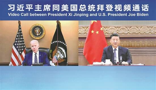 3月18日晚,国家主席习近平在北京应约同美国总统拜登视频通话 新华社发 |