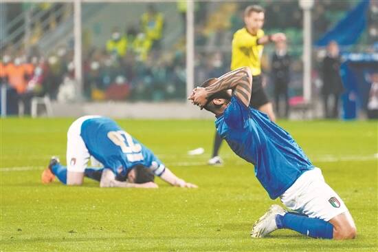 在输给北马其顿后,新科欧洲杯冠军无缘2022卡塔尔世界杯。欧洲杯冠军无缘夺冠之后那届世界杯,同时也无缘夺冠之前那届世界杯,意大利不是第一支,1992欧洲杯冠军丹麦和2004欧洲杯冠军希腊同样如此。 不过,意大利在球迷中的影响力远非丹麦和希腊可比。蓝衣军团无缘俄罗斯世界杯,时任主帅文图拉因此下课;现任主帅曼奇尼拿起教鞭之后,意大利节节攀升。可是在欧洲杯夺冠后,意大利跌入又一个低谷,让球迷对曼奇尼和他的弟子们又爱又恨。 这支意大利队没有个人能力特别突出的大牌球星,主要依靠团队协作。去年在欧洲杯,曼奇尼把弟子们的潜力调动到极致,那支意大利队快速、简捷、精准。可是一支球队不可能一直超水平发挥,任何球员也不可能一直处于极致状态。 曼奇尼坦言:“从去年9月开始,发生了一些令人难以置信的事情。”去年9月3日,意大利在欧洲杯夺冠后的第一场比赛就表现很差,在世界杯预选赛主场以1比1被保加利亚逼平,为屈就附加赛埋下伏笔。去年10月7日,意大利在欧洲国家联赛半决赛主场以1比2负于西班牙,37场不败的金身被打破。 欧洲杯夺冠后的6场世预赛,意大利仅取得1胜4平1负。获胜的那场比赛为5比0大胜“鱼腩部队”立陶宛,没有任何参考价值;在另外5场比赛,意大利仅取得两个进球。由于攻击力出现暴跌,意大利彻底失去了进军卡塔尔的机会。 欧洲杯夺冠功臣出现状态下滑和进取心下降,这其实是自然规律。例如,主力前锋因西涅开始考虑多赚钱,6月份与那不勒斯合同期满之后就将转投美国职业大联盟,不惜在当打之年去踢养老足球。可是作为主帅,曼奇尼没有及时开发新鲜血液,应该为意大利的出局负责。 年轻前锋斯卡马卡状态很出色,但曼奇尼不敢对他委以重任,意大利昨天主打的前锋组合还是因莫比莱、因西涅、贝拉尔迪。为了备战世预赛附加赛,曼奇尼一度招入昔日天才前锋巴洛特利,但在最终参赛名单还是放弃“巴神”。曼奇尼还招入巴西归化前锋佩德罗,但在世预赛附加赛直到第89分钟才把他换上场,这种换人毫无价值。 意大利边锋小基耶萨去年入选欧洲杯最佳11人阵容,可惜他长期养伤,使意大利在世预赛附加赛缺少了进攻爆点。门神唐纳鲁马去年荣膺欧洲杯金球奖,但他转投巴黎圣日耳曼之后与另一位门神纳瓦斯轮流出场,状态得不到保证。唐纳鲁马在欧冠出现低级失误,造成大巴黎被皇家马德里逆转,曼奇尼专门打电话对弟子进行心理按摩,可惜收效不大,唐纳鲁马现在似乎自带被绝杀属性和被逆转属性。 羊城晚报记者 刘毅