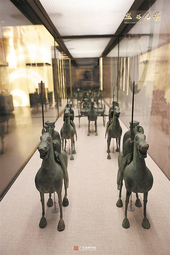 文/羊城晚报记者 黄宙辉 通讯员 黄苏哲 图/主办方提供 3月24日-6月26日,广东省博物馆(广州鲁迅纪念馆)与甘肃省博物馆联合主办的“丝路光华:粤陇文物精品联展”在广东省博物馆开展。广东、甘肃两地联手奉上的这场大展,遴选了两地文博单位文物藏品逾500件进行展出,其中有许多珍品为首次在广东亮相。 位于中国西北的甘肃,连接中原和亚洲内陆,成为“陆上丝绸之路”(以下简称“陆丝”)必经的交通要道;位于华南地区的广东,面向广阔的南太平洋,拥有“海上丝绸之路”(以下简称“海丝”)重要的贸易港口。它们相隔千里,又息息相关。本次由广东省博物馆(广州鲁迅纪念馆)与甘肃省博物馆联合主办的“丝路光华:粤陇文物精品联展”,让“陆丝”与“海丝”跨越时空相聚广东,探索“陆丝”“海丝”不同文明风采。 本次展览以最新的考古发现和史料文献为基础,分为“丝路之兴”“丝路之盛”“丝路之光”三大部分,展现丝绸之路的繁盛。翼兽青铜提梁盉、高浮雕兽面纹金带扣、熊踏跺砖、胡人牵驼图模印砖……展览现场展出的诸多文物精品,十分惊艳。 展览现场,通过两颗分别出土于甘肃和广东的蜻蜓眼玻璃珠引入展览,采取实物与场景复原相结合的展示手法,带领观众穿越掩埋于荒漠中的古驿站、参观庄严肃穆的石窟、登上蜿蜒曲折的长城,同时配合声、光、电相结合的多媒体互动技术,为观众营造身临其境的观展氛围。 文物赏析 蜻蜓眼玻璃珠 (西汉早期 广东省博物馆藏) 蜻蜓眼玻璃珠最早制作于公元前16世纪埃及地区。玻璃珠纹饰象征神人眼睛,多作护身符之用。蜻蜓眼玻璃珠经欧亚草原向东传入中国,约公元前500年传入黄河中下游和长江流域。经研究,国内出土发现的最早一批蜻蜓眼玻璃珠为西方舶来品,属于钠钙玻璃。 当蜻蜓眼玻璃珠传到楚国时,楚人开始仿制,成分以铅钡或钾钙为主。广东省博物馆藏的此件西汉早期蜻蜓眼玻璃珠,经成分检测为铅钡玻璃,为中国原产,见证了西方工艺中国化以及在国内从北向南传播的过程。岭南地区发现的汉代蜻蜓眼玻璃珠,颜色主要是蓝色、不透明、圆形,珠表面嵌饰黄、白、蓝相间的圆圈眼纹,形似蜻蜓的复眼。 熊踏跺砖 (甘肃省酒泉市下河清农场采集 甘肃省博物馆藏) 熊饰空心砖踏跺 (广州南越王宫署遗址出土 南越王博物院藏) 熊寓意着勇猛和强悍,商周时期已是常用的装饰题材。至秦汉时期,熊的艺术造型更加丰富多彩,代表着拥有者特殊的身份地位。汉代以熊做装饰的残砖在甘肃酒泉和广东广州皆有发现,纹饰皆作熊正面踞姿状。无论是西北中央王朝的军事边塞,还是南方边远属国的华丽殿宇,都采用图案造型相近的建筑构件,体现出汉代诸侯等级制度、礼仪的一致性。 翼兽青铜提梁盉 (春秋 甘肃省博物馆藏) 这件青铜提梁盉出土于甘肃省泾川,巧妙地设计成一只具有双翼的四足兽,以龙为提梁,以凤为盖钮。据研究,翼兽形象早期流行于中亚、西亚地区及亚欧草原,传播到中国约为战国时期。 胡人牵驼图模印砖 (唐 敦煌市博物馆藏) 这件胡人牵驼图模印砖出土于敦煌佛爷庙湾墓群。骆驼素有“沙漠之舟”之称,为商队驮载商品,往返于丝绸之路上。河西走廊干旱少雨,骆驼温顺亲近,负载能力强、行走耐力好,是陆上丝路不可或缺的交通运输工具。胡人牵驼是河西走廊商旅生活的真实写照。骆驼背着十字捆扎的椭圆形驮囊,里面装载着丝绸、瓷器、香料等商品。甘肃省出土不少唐代驼俑明器,说明了当时骆驼跟其他牲畜一样都是财富的象征,反映出河西走廊的日常生活中商业。 鸽子纹锦残片 (唐 甘肃省博物馆藏) 中国丝绸西传罗马帝国后,备受贵族青睐,因而促进丝绸贸易的发展,各国使者和商旅将中国精美的丝绸源源不断运往波斯、罗马。中外考古发掘表明,中国古代丝绸品种繁多,色泽绚丽,工艺精巧,技艺高超,对世界产生了深远影响。值得注意的是,丝绸不仅是中国的单向输出。隋文帝就异常喜爱来自中亚的“波斯锦”,命人积极学习,反过来促进了中国丝织技术的发展。 波斯蓝釉陶瓶 (南汉 广州市文物考古研究院藏) 这件波斯蓝釉陶瓶出土于广州大马站景豪坊工地。波斯蓝釉陶瓶多数作为香油、葡萄酒、蔷薇水等液体的储运容器,大多是唐五代时期从西亚引入。此类陶瓶在我国广州、福州、扬州、宁波、桂林等沿海地区均有发现,国外则分布西起非洲东海岸、东抵日本。 影塑飞天 (北魏 麦积山石窟艺术研究所藏) 这件影塑飞天出土于麦积山石窟第133窟。麦积山石窟,自后秦开凿以来,经历了数个朝代的重修、扩建和开凿,距今已有1600余年,与莫高窟同为中国四大石窟之一。麦积山石窟艺术精髓在于泥塑、石刻,但其壁画也极为稀罕,也曾是“有龛皆是佛、无壁不飞天”,如今现存有1300余平方米。伴随着佛教及佛教艺术传播,飞天经中亚、沿着丝绸之路从印度传入中国,借助衣裙和飘带,创造出韵律柔美的飞动气势和美丽姿态。 象牙镂空雕套球摆件 (1870年 广东省博物馆藏) 广东象牙球一直被视为清代晚期工艺中的翘楚,充满炫技感。18世纪广东象牙球制作悄然兴起。牙球工匠须掌握一定的数学和几何学等知识,于圆球表面精准定位孔洞,然后利用车床镟削分层,最后进行雕镂纹饰。广东象牙球表面往往均匀布列14个彼此相等间距的洞口,可能是中国本土几何样式的运用。牙球中利用到的