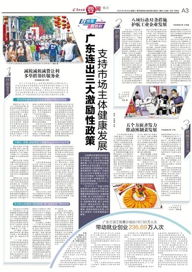 广东连出三大激励性政策 支持市场主体健康发展