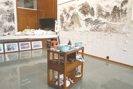 文/羊城晚报记者 朱绍杰 文艺 图/羊城晚报记者 文艺 黎存根 实习生 杨蕊 许钦松,1952年生,广东澄海人。一级美术师,国务院特殊津贴专家。曾任中国美协副主席、广东省文联主席、广东省美协主席、广东画院院长等职。现任中国美术家协会顾问,中国艺术研究院研究员、博士生导师,故宫研究院中国画法研究所研究员等。 走进工作室 生活与艺术在此“零距离” 自相继从广东省的美协、画院、文联卸任管理职务后,许钦松回到了自己最本初的角色——画家。 “工作室是艺术家的舞台。”在许钦松看来,一个画家的大部分时间和生命,在了解生活、面对自然后,就应该耗在画室里。“没有台下十年功,不可能有台上三分钟。不在画室里的画家,就像不开车的司机一样。” 这几年来,许钦松在白云山麓、南湖湖畔的家里享受“睡到自然醒”的待遇,同时保持每天画画约五个小时。当他有创作冲动和灵感的时候,穿过一扇门就从起居室走到工作室。用他自己的话说,这是让生活和艺术“零距离”。 许钦松一直强调和推崇“生活艺术化、艺术生活化”,工作室内的诸多陈设,一起见证着这位艺术家的品位与阅历。显要处摆着的潮州木雕,与广东省博物馆中的藏品同款;从天花板直落到地面的书架上,摆放着故宫博物院精印的《中国历代法书精品大观》等藏书;墙上有他与三位中国艺术研究院博士生的合照,“许老师”的欣慰溢于言表…… 探索灰墨的表达极限 2022年,许钦松迈入杖国之年。他说,人生七十是一个重要节点,便刻了几枚闲章,标示“七十之作”,进而提醒自己在艺术上不可止步。在这间位于居所一楼,长11.5米、高4.3米的画室里,许钦松延续着在中国山水画巨制上的创作与探索,不断迸发创作灵感,创作出大量优秀的山水画作品。 对于登门前来的羊城晚报记者,许钦松讲述起自己最近如何重读董其昌、唐寅等历代书家经典,进一步追求“金石入画”,同时也致力于探索灰墨的表达极限,兴致勃勃。 在庆祝中国共产党建党百年之际,许钦松亲自带队赴延安写生,收集创作素材,回到画室后,完成了《延安杨家岭毛主席故居》《延安杨家岭毛主席种过的菜地》《仰望延安宝塔山》等主题创作,其中部分作品被广东美术馆等收藏。也是在这间画室里,许钦松在居家避疫期间从新闻有感而发,完成了山水画《风月同天》,后被广州艺术博物院收藏。 在采访的前两天,许钦松刚刚完成两幅主题大画:为国家安全日主题美术摄影展创作的《海定波平》,以及为粤东红色交通线创作的《棣萼楼》。 山水画巨制迈向“七十之作” 许钦松曾言,艺术家的工作室就像是生产车间,空间和布局有时需要从创作需求出发。这间宽敞的工作室,就是为他创作大画所设。“我画画,画几笔以后要退后几米看,然后再画。不断重复。”许钦松说,这个创作习惯让他有了“后退”的人生意识。“就跟我现在的身份一样,退后到一定的距离观看这个世界,原来是这么奇妙。” 大画巨制的创作极耗体力、心神,与过去相比,许钦松现在站着画一个小时,偶尔会有想坐一下的念头。在社会上流行“躺平”说法的日子里,他却有一枚闲章“立身之本”,一语双关道出了自己的思考。 许钦松觉得,有了旺盛的生命力,才会有旺盛的艺术创造力。所以他如今更注重身体健康,除了保持生活规律,还爱在画室外的小花园晒太阳、散步,几乎每天都走上七八千步。 小花园是许钦松宝爱的另一方天地,种植着他从各地搜集来、精心照料的植物。其中有一棵小叶紫檀相当名贵,生机勃勃。“这树的生长周期很长,几年了才能长大一丁点。不过,长得快的树未必成材,反而是长得越慢的越名贵、越能成材。”许钦松由此联想到人书俱老的中国画艺术:“同样,艺术家要不断积累、成长,通过岁月的打造、锤炼,才能期望有所成就。” 近年来,随着孙女、孙子的相继出生,许钦松感受到浓浓的天伦之乐。当孩子跑到爷爷的工作室,拿起毛笔作画,这里顿时有了儿童乐园的热闹。许钦松笑眯眯地说:“未来已来。” 十年前,时年六十的许钦松开启“吞吐大荒”山水画巡展,历经数年走过北京、广州、上海、郑州、西安、武汉等地,北上南下,穿行不息。如今,在他工作室的画板上,又悬起了一张宽6米、高2米的大宣纸,正待铺墨设色。这是许钦松在为下一场大型个展准备新作,也是他迈入人生七十的一张待画新纸。 艺谈 羊城晚报:您最近提出绘画的“第三自然”理论,是基于什么思考? 许钦松:绘画的“第三自然”,是我多年以来在国画创作、探索以及实践中得来的结果。它是我多年山水画创作实践的经验之和。 所谓的“第一自然”,乃是我们观看自然时,眼睛的所见之景;而我们的眼睛总是有所选择地去看,并且将这种所见转化为心象的所见,这被我称为“第二自然”;而观赏者每看每新,并融入自己心中的感受与想象力,可将其称为“第三自然”。对于一个山水画家来说,山水画的创作需要实现从“第一自然”到“第三自然”及“第三自然”的跨越。 这也类似于宋代禅宗大师青原行思提出参禅的三重境界:参禅之初,看山是山,看水是水;禅有悟时,看山不是山,看水不是水;禅中彻悟,看山还是山,看水还是水。 羊城晚报:在中国画的当代发展方面,您有怎样的思考? 许钦松:当代山水画的公共功能,与古人所追求的境界相比已经有了很大变化,这是时代使