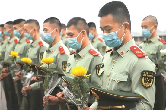 “红色前哨连”官兵鞠躬肃立,默哀三分钟,追思革命先烈 通讯员 黄敬文 摄 |