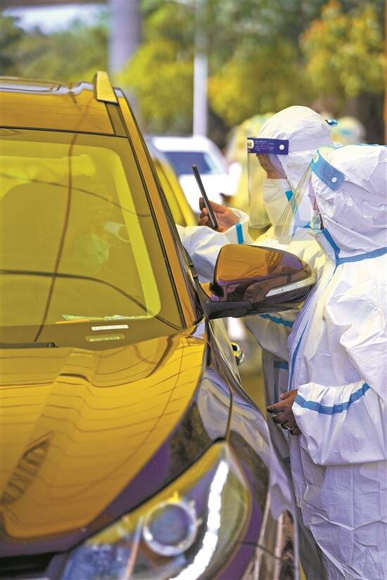 4月3日,市民进入万安园前需要经过防疫检查 |