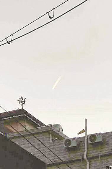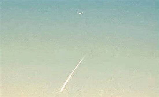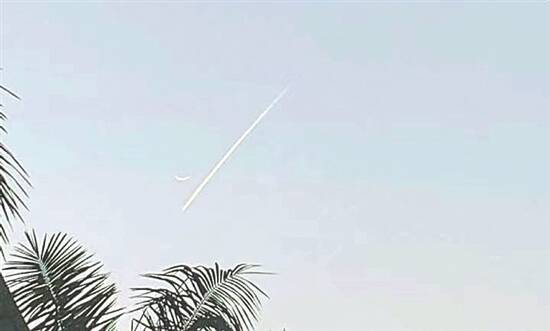 网友拍摄到的“不明飞行器”,气象部门分析为飞机航迹云 |