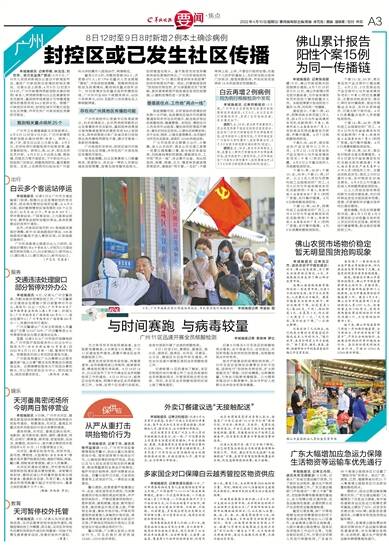 羊城晚报记者 李焕坤 罗仕 为力争尽早尽快发现感染者,全力阻断传播链条,8日晚至9日清晨,广州11区接连发布通告,部署开展全区全员核酸检测工作。 奥密克戎变异株传染性强