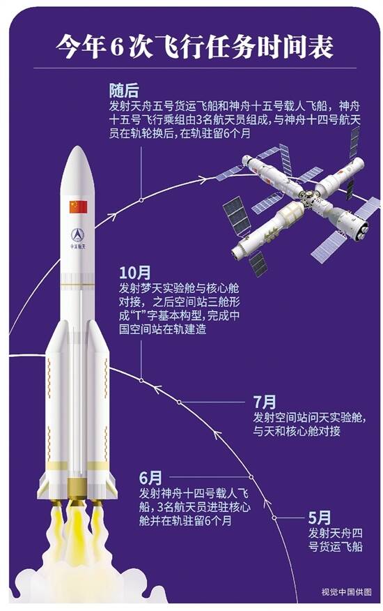 羊城晚报驻京记者 王莉 4月17日,国务院新闻办公室举行新闻发布会,介绍中国空间站建造进展情况。中国载人航天工程办公室主任郝淳介绍,根据任务安排,2022年将完成中国空间站的在轨建造,共计划实施6次飞行任务。 这6次任务分别是5月发射天舟四号货运飞船,6月发射神舟十四号载人飞船,7月发射空间站问天实验舱,10月发射空间站梦天实验舱,之后还将实施天舟五号货运飞船和神舟十五号载人飞船发射任务。 空间站关键技术验证阶段完美收官 4月16日,神舟十三号飞行乘组安全返回东风着陆场。郝淳表示,神舟十三号乘组共在轨飞行183天,创造了中国航天员连续在轨飞行时间的最长纪录,神舟十三号任务圆满成功标志着空间站关键技术验证阶段的完美收官。 郝淳表示,中国空间站建造分为关键技术验证和建造两个阶段实施,分别规划了6次飞行任务,其中,关键技术验证阶段主要任务目标是全面突破和掌握空间站建造和运营相关的关键技术。自2020年以来,先后成功实施了长征五号B运载火箭首飞,空间站天和核心舱,神舟十二号、神舟十三号载人飞船,天舟二号、天舟三号货运飞船共6次飞行任务,均取得圆满成功,圆满完成了关键技术验证阶段的任务目标,为空间站建造阶段任务实施奠定了坚实基础。 中国工程院院士、中国载人航天工程空间站系统总设计师、中国空间技术研究院研究员杨宏介绍,神舟十三号飞船顺利返回后,目前现在在轨的是天和核心舱与天舟三号货运飞船组合体在运行,状态正常,在轨各项运行参数稳定。 “问天”“梦天”地面研制进展顺利 今年计划实施的6次飞行任务中,包括空间站问天实验舱和梦天实验舱的发射。杨宏透露,目前两个实验舱在地面的研制进展顺利。 其中,问天实验舱已在天津完成了整舱的集成总装、测试和大型试验工作,整装待发;而梦天实验舱目前已在天津完成了相应的集成总装和试验工作,正在开展地面测试,后续还将完成整舱热试验、回归测试等试验工作,正按计划推进。 杨宏表示,空间站建造完成后,两个实验舱将是航天员在轨主要的工作场所,在两个实验舱里都可以开展空间科学、空间材料、空间医学以及空间探测等多个领域的试验。 其中,问天实验舱配置了与核心舱一样的航天员生活设施,包括3个睡眠区、1个卫生区和厨房等设施,可以保障航天员生活。另外,问天实验舱配置了一个小型机械臂、航天员出舱气闸舱,还具备核心舱对于组合体管理控制功能的备份舱段,当核心舱平台的功能出现故障时,可以切换至问天实验舱行使组合体控制和管理功能,整体上提高空间站的可靠性。 梦天实验舱配置了一个货物气闸舱和一个舱外展开试验平台。今后需要在舱外安装的科学试验设备,可以通过货运飞船运送到空间站,再通过货物气闸舱把载荷送到舱外,由机械臂或者航天员把它安装到舱外的平台上,实现舱外试验项目不断更新。 载人飞行将首次实现在轨乘组轮换 对于今年将发射的神舟十四号、十五号载人飞船,中国载人航天工程航天员系统总设计师、中国航天员科研训练中心研究员黄伟芬透露,执行2次载人飞行任务的航天员乘组已经选定,目前飞行乘组的身心状态非常好,正在积极开展相关的训练和任务准备。 黄伟芬表示,神舟十四号和神舟十五号两个乘组各由3名航天员组成,都将在轨飞行6个月,将首次实现在轨乘组轮换,实现不间断有人驻留。两个乘组6名航天员将共同在轨驻留5-10天,航天员系统将面临更加严峻的挑战。 黄伟芬称,神舟十四号乘组将配合地面完成空间站组装建设工作,从单舱组合体飞行逐步建成三舱组合体飞行状态,在这期间要经历9种组合体构型、5次交会对接、3次分离撤离和2次转位任务;他们将首次进驻问天实验舱和梦天实验舱,建立载人环境;配合地面开展两舱组合体、三舱组合体、大小机械臂测试,气闸舱出舱相关功能测试等工作;将首次利用气闸舱实施出舱活动;完成问天实验舱和梦天实验舱14个机柜解锁、安装等工作。 神舟十五号乘组将计划实施数次出舱活动任务,进行舱内载荷设备组装、测试和调试工作,操控机械臂实施舱外载荷安装;对三舱三船最大构型组合体进行运行管理和维护。 两个飞行乘组还将开展科普教育及其他公益活动,按计划开展数十项在轨科学研究的实验和工程技术试验、飞行任务数据资料收集和拍摄;开展在轨健康监测、防护锻炼、在轨训练和演练,以及大量空间站平台巡检测试、设备维护照料、站务和物资管理等工作。 明年计划发射我国首个巡天望远镜 中国空间站全面建成后,载人航天工程有哪些蓝图构想?郝淳表示,今年完成空间站在轨建造以后,工程将转入为期十年以上的应用与发展阶段。初步计划是每年发射两艘载人飞船和两艘货运飞船,航天员要长期在轨驻留,开展空间科学实验和技术试验,并对空间站进行照料和维护。 郝淳表示,为进一步提升工程的综合能力和技术水平,还将研制新一代载人运载火箭和新一代载人飞船。其中,新一代载人运载火箭和新一代载人飞船的返回舱都可以实现可重复使用。新一代载人飞船综合能力得到大幅提升,可以搭载7名航天员,其上行和下行载荷能力得到大幅度提高。同时,考虑研发空间站的扩展舱段,为进一步支持在轨科学实验和为航天员的工作和生活创造更好的条件。 此外,空间站这十年以上的应用与发展阶段