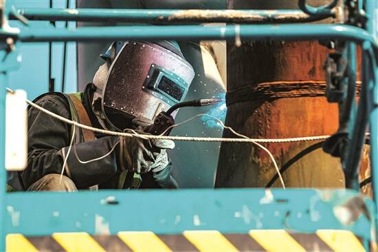 吊装、焊接过程中,工人们会为一条接缝反复确认 |