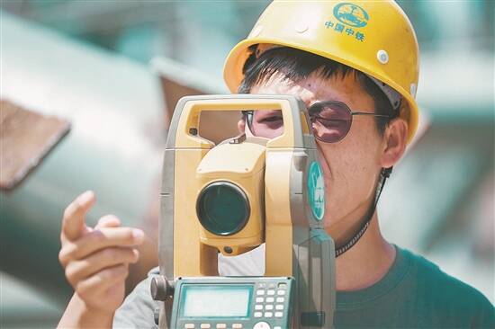 测量人员顶着艳阳,一丝不苟地进行技术操作 |